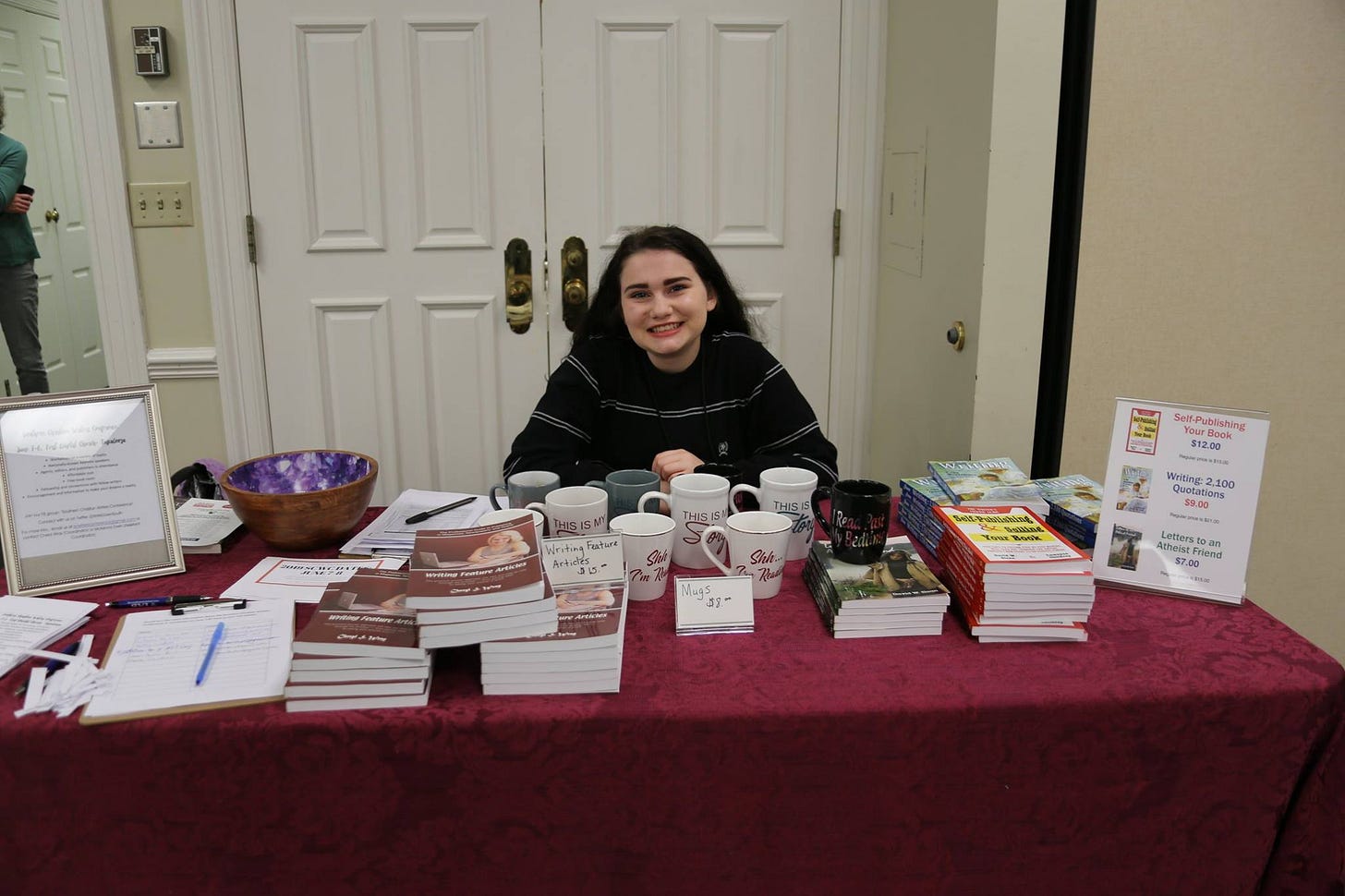 Have bookmarks, postcards, or flyers available with info about your website, future books, or social media. This helps readers stay connected beyond the event.